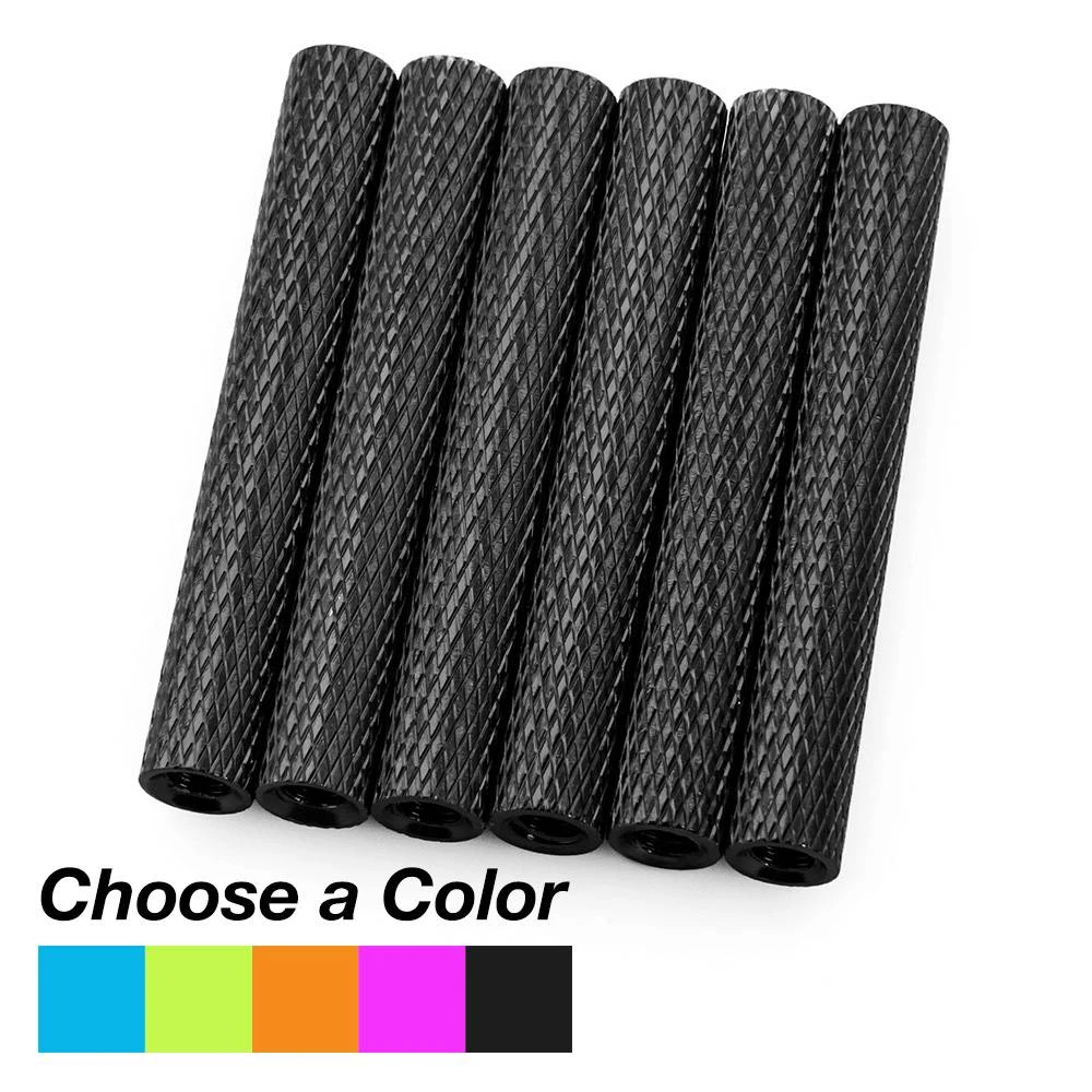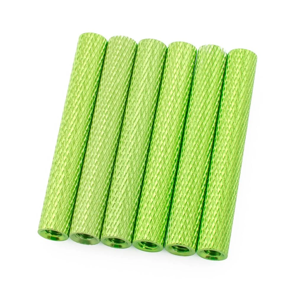 These 35mm aluminum spacers are lightweight, anodized and have a textured grip surface treatment, which facilitates holding of the spacers during assembly and servicing of the airframe. These 35mm spacers are a direct fit for the QAV-R, QAV210/180, QAV250, QAV400 and QAV500 airframes.