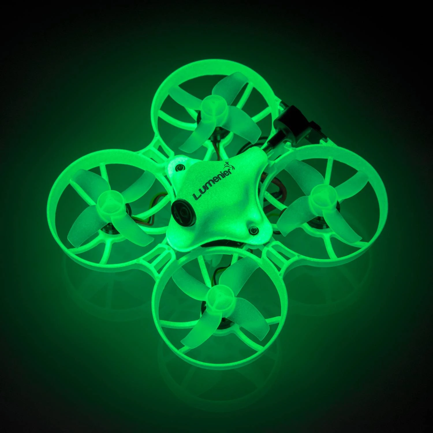 This Beta75X Lumenier Edition frame is a custom 75mm 2S whoop drone, now glow in the dark! Pair with glow in the dark propellers and canopy, to make a completely glow in the dark drone!