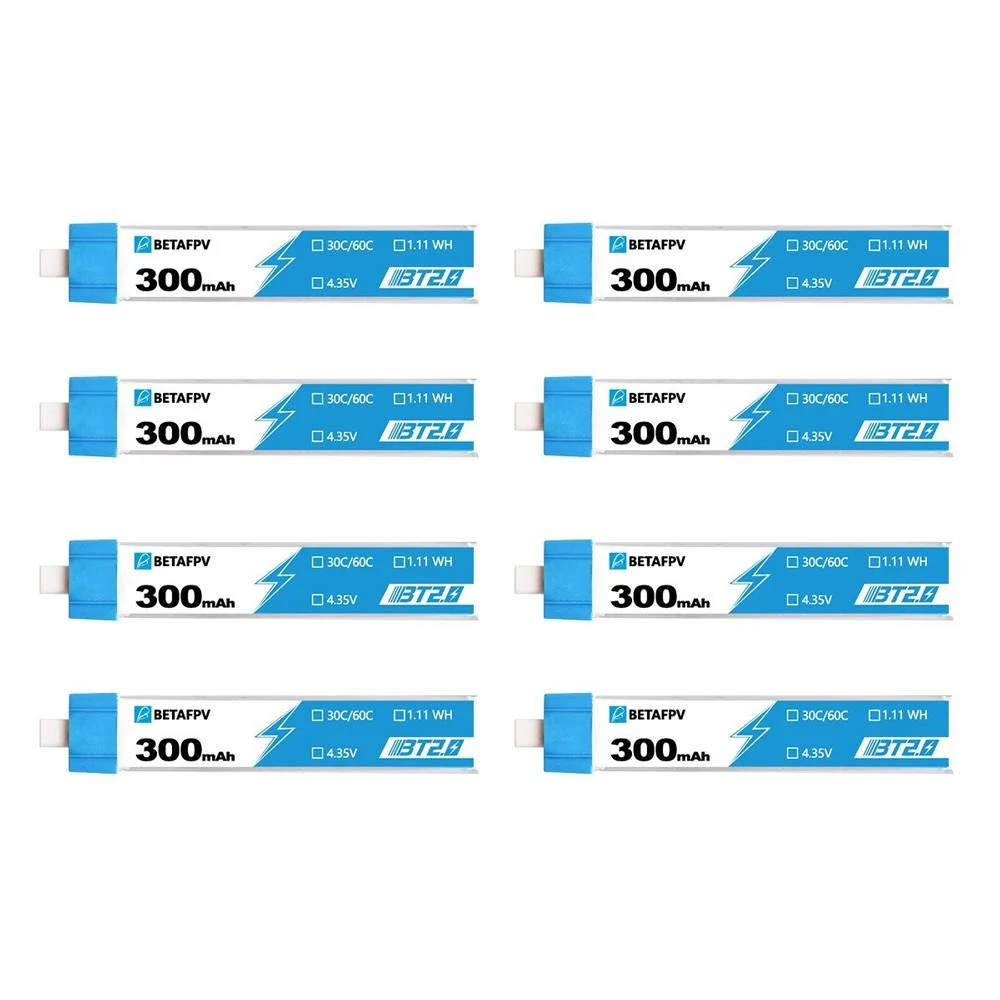 - 8 x BETAFPV BT2.0 300mAh 1S 30C HV Battery