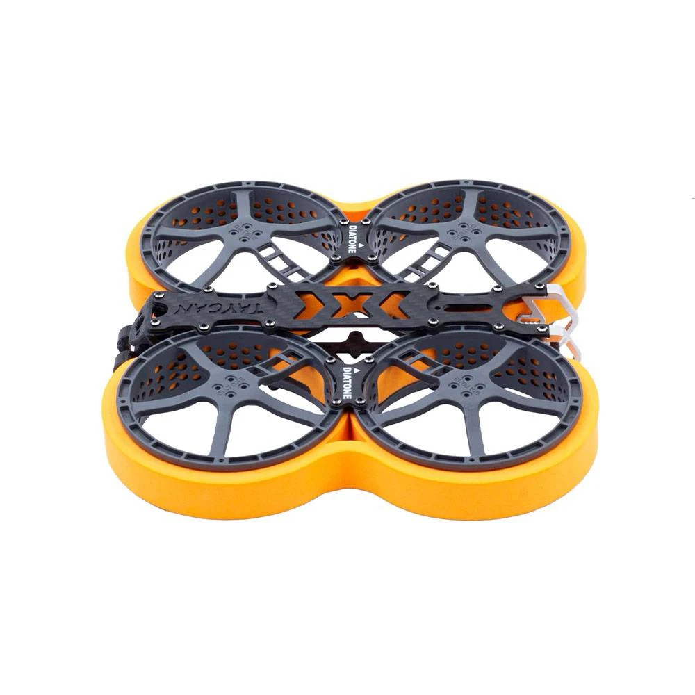 The Diatone Taycan 25 2.5″ is a solid performer in the cinewhoop category. Stability in flight is enhanced by the pusher configuration which gives an even center of gravity.