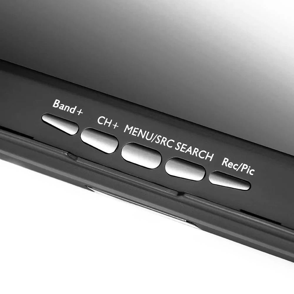 The Eachine LCD5802D is a 7″ FPV monitor with a built-in 7.4V 2000mAh battery. This monitor is equipped with dual receivers for excellent reception, as well as a work status OSD display, DVR function, and 40 Channels. The durable pop-up sunshade ensures you will have a great visual even on the brightest of days! The Work status OSD display shows the device’s working condition in real-time so you won’t be caught off-guard.