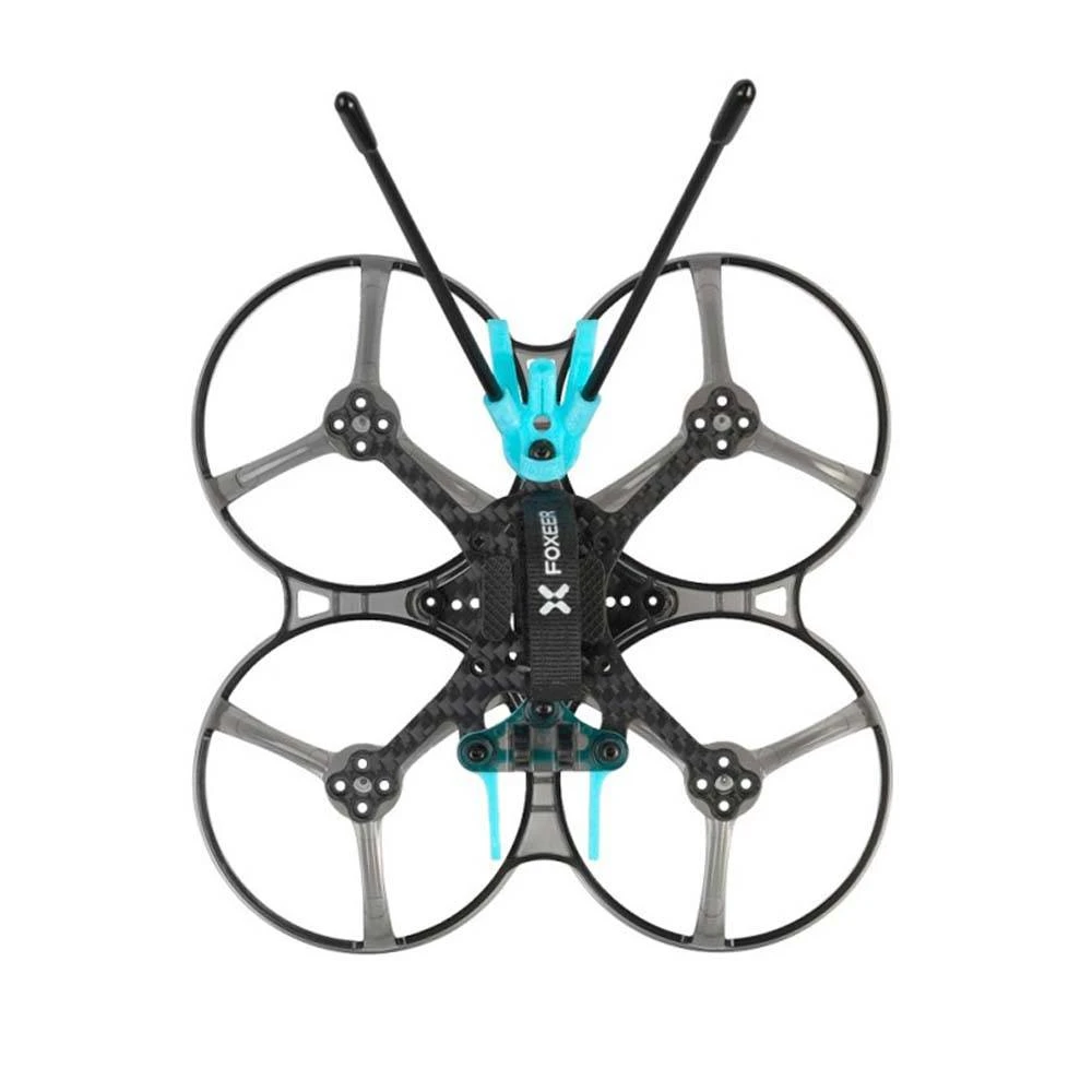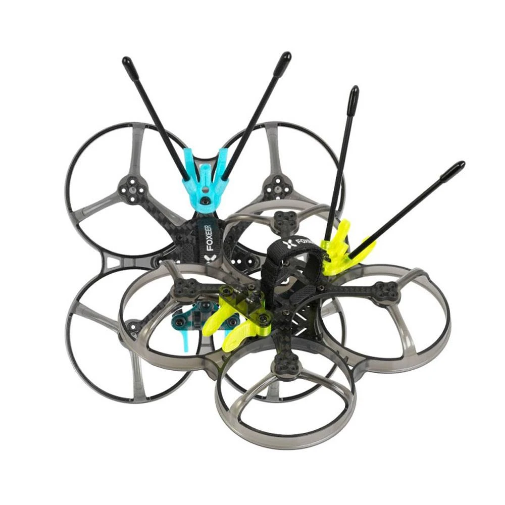 The Foxeer Foxwhoop 25 Cinewhoop Frame Kit comes in fluorescent green or teal color. This frame uses high-performance T700 carbon for increased stiffness and vibration reduction. The frame can be built as an Analog or an HD setup.
