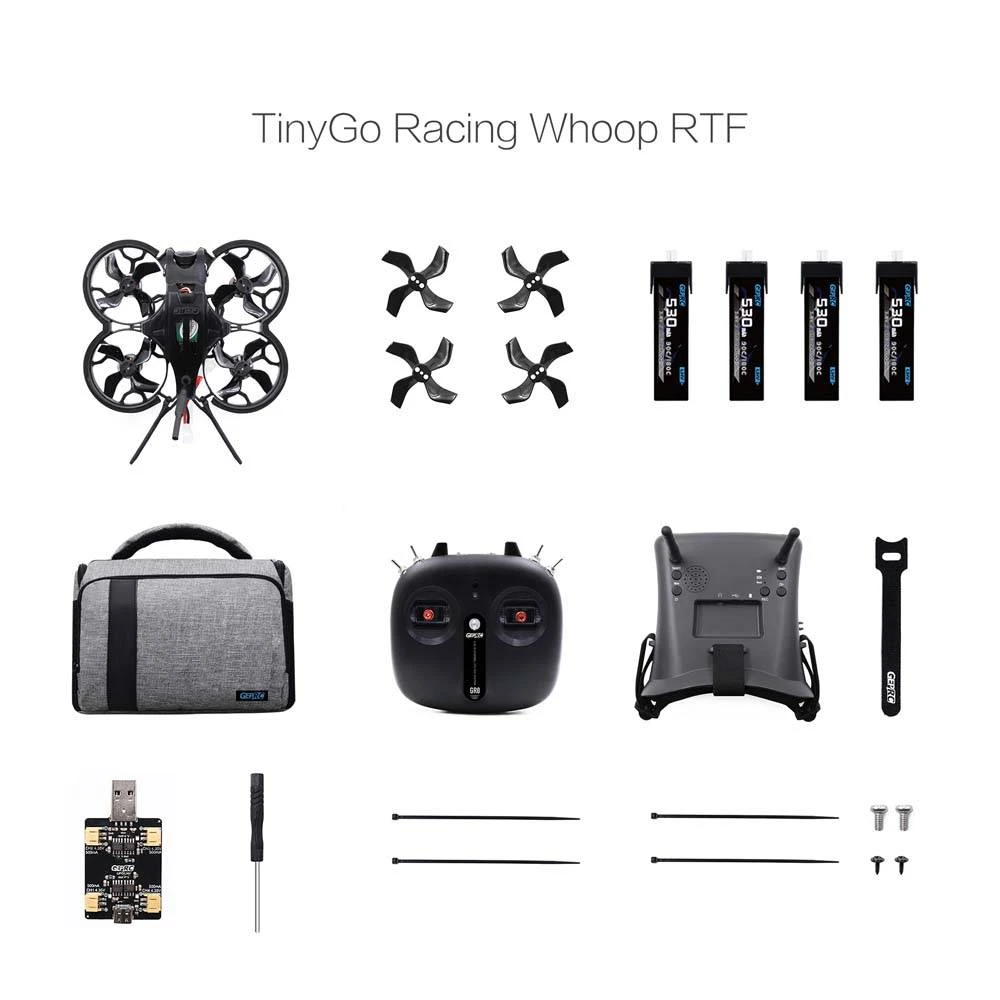 GEPRC is happy with their new release of the TinyGO, which comes in a ready-to-fly whoop kit! GEPRC has worked so hard to create a lightweight whoop that is suitable for indoor flying, has max performance, and is a great racing whoop drone!