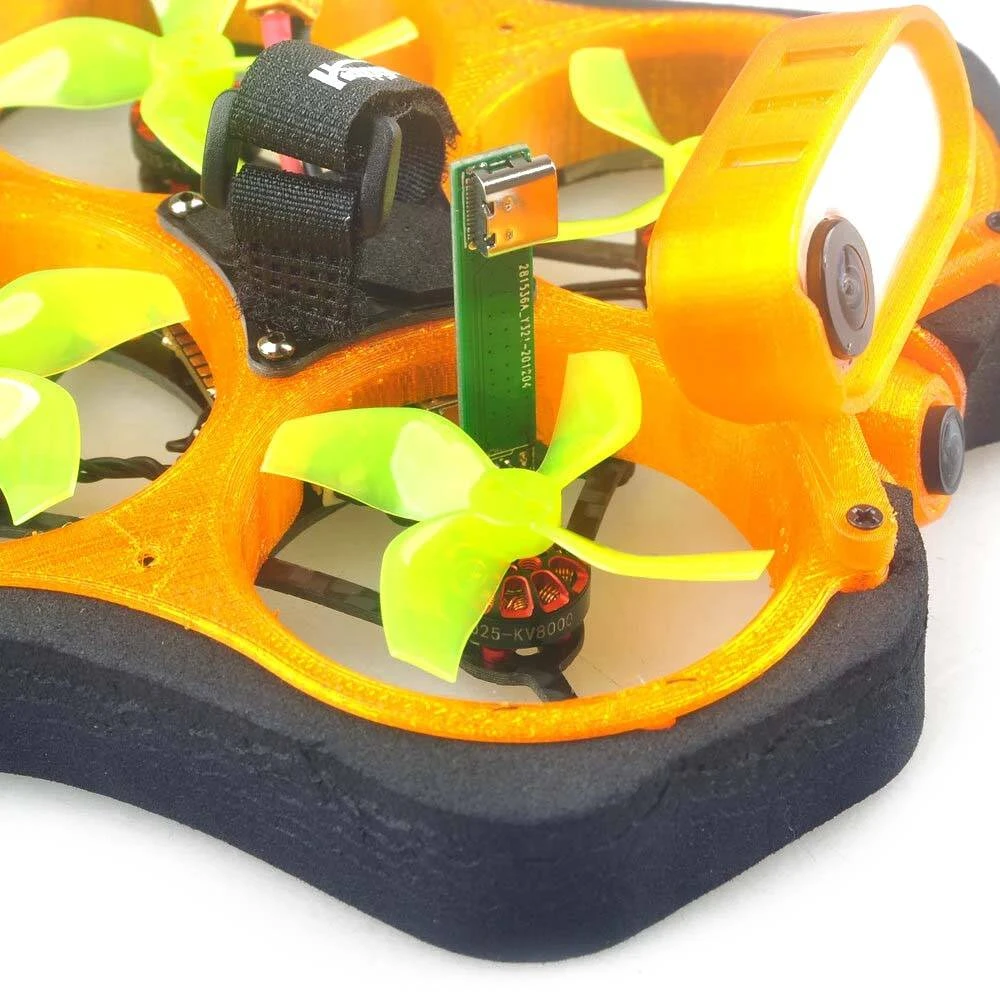 this DIY kit is equipped with high-performance and durable components, like the CRAZYBEE F4 V3.1 Flight Controller, Onboard 12A 4-in-1 ESC, 5.8G 40CH 400mw VTX, Caddx ANT 1200TVL Camera, and more! The frame is made out of high-precision TPU 3D printing, fixed with carbon fiberboard, and uses integral foam to prevent a collision. With the CINE8 DIY Kit, every FPV pilot could enjoy the fun of building their own FPV Cinewhoop!