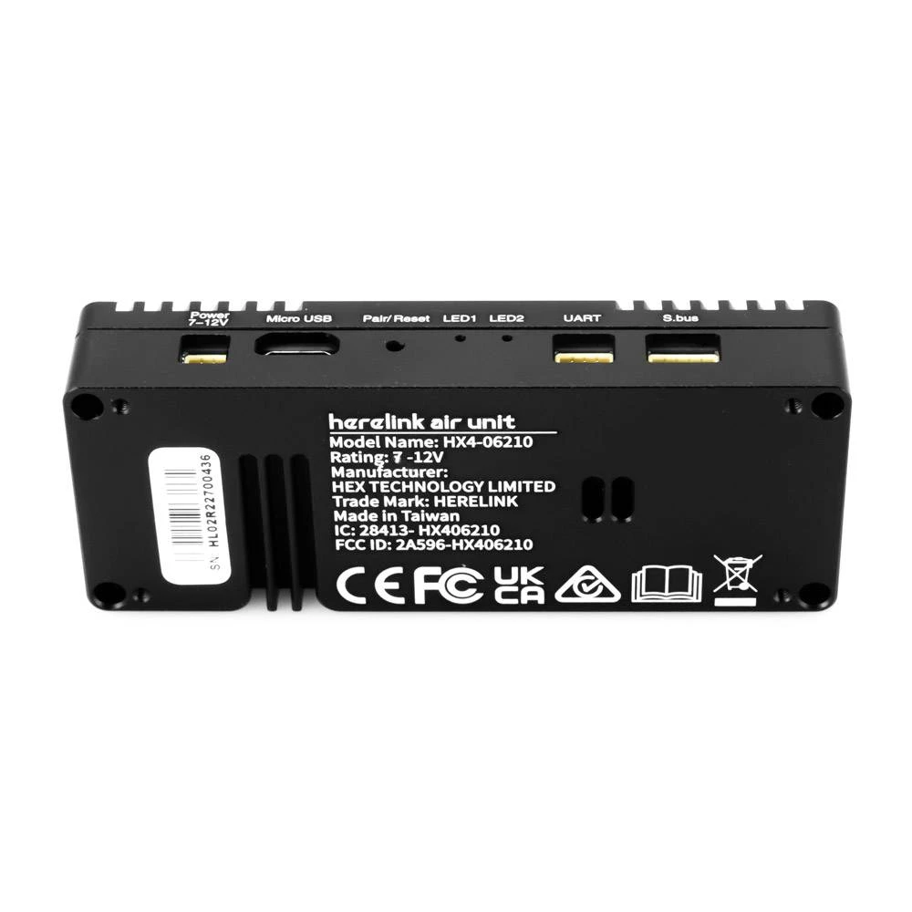 The Herelink Air Unit 1.1 Integrates a data link unit, remote control link, and video display unit into a single device, making a complex device system integrated and miniaturized. This VTX unit features a signal transmission range up to 20KM, minimum latency of 110ms, two HDMI inputs, and supports 720p 30fps, 1080p 30fps / 60fps video format. The Air Unit uses between 5-12v input power and has a single UART for connection to the flight controller or other Mavlink accessories. Now updated with Sd Card Slot and Ethernet port.