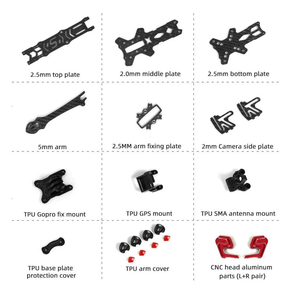- CNC aluminum side plates combined with 3D printed parts to make your drone look dope!