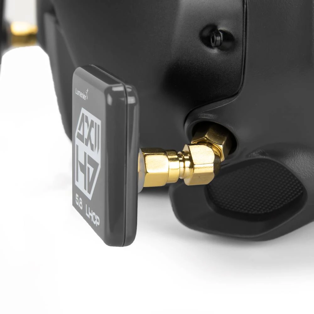 The Lumenier AXII Patch HD Antenna features an ultra-thin active element suspended above the reflector, which allows for a higher velocity factor and lowers losses. This technology along with precision manufacturing results in a top-of-the-line receiving antenna. It works great on both video goggles or ground stations for 5.8GHz and is capable of receiving signals up to many miles away. The included 45° Adapter allows for better reception and the LHCP polarization is great for the DJI FPV Goggles V2.