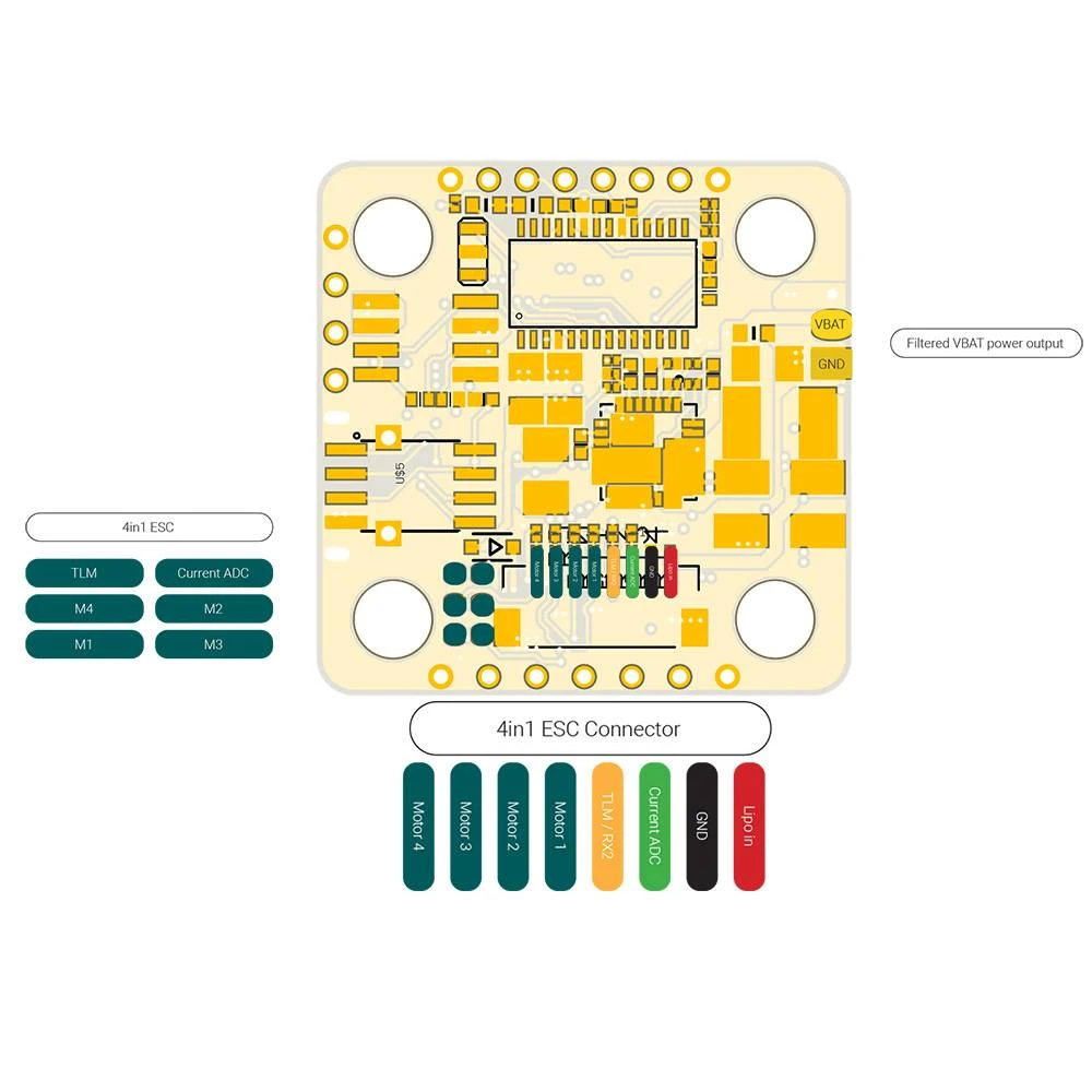 - 1x SH1.0_8pin connector (Vbat/G/Curr/TLM/S1/S2/S3/S4)