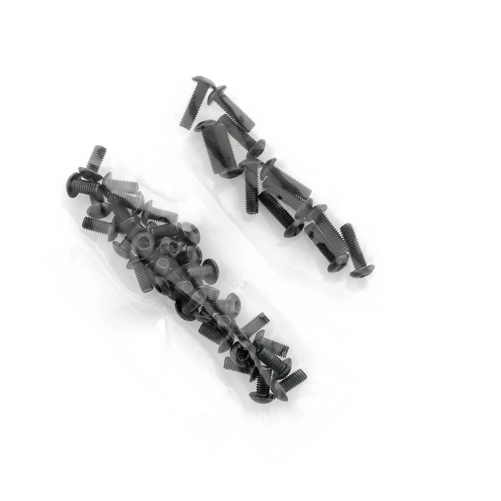 A set of black oxidized screws made to fit the QAV-R build. Includes both M3x6 and M3x10 size screws. Grab a pack to replace any screws that are missing or have been damaged.