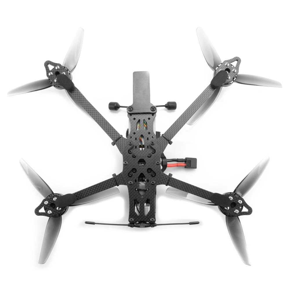 This QAV-S JohnnyFPV 7″ version uses a “deadcat” style for the arms, which sweeps the arms back keeping your props out of view of your HD recording camera. Now you can cruise long-range, diving down the mountains with buttery smooth HD footage and no props in view!