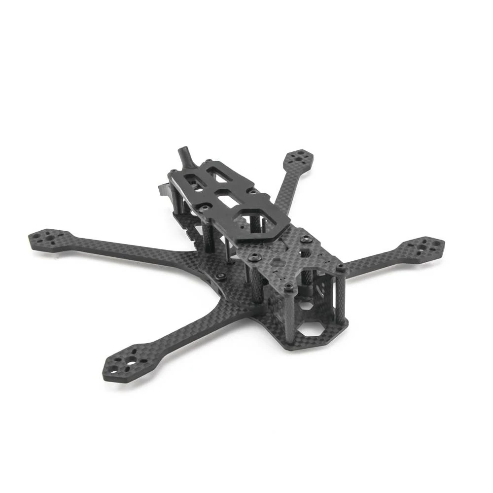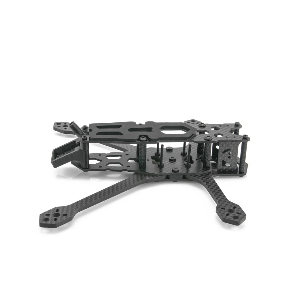 This frame keeps the same innovations from the line; the arm locking system includes a hinge with a press nut that secures the arms and requires just one screw to swap the arm. This is a convenient feature when maintenance is needed. The second feature is a split bottom plate that gives enough room for a micro camera in the front while also reducing the rear deck space, which can be used to mount any VTX even a Caddx vista HD module. Lastly, the QAV-S MINI 4-inch has isolated 16×16, 20×20, and 26.5×26.5 stack mounting that lets you take care of your electronics stack without the need to alter the frame structure and overall build.