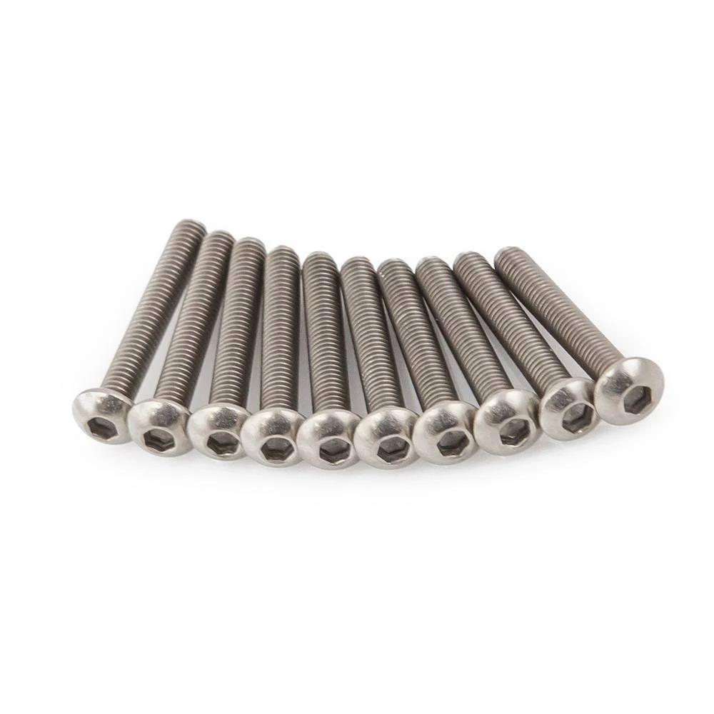 This is 10 pieces of ultra light weight Titanium M3x20 button head socket screws. Titanium screws are about 1/2 the weight of a steel screw of the same size.