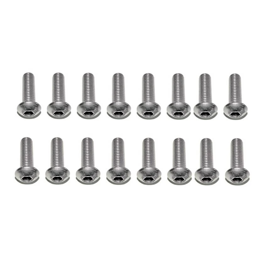 A set of 16 M3x8 button head socket screws. These longer screws allow you to mount your motors including the QAV250 Prop Guards.