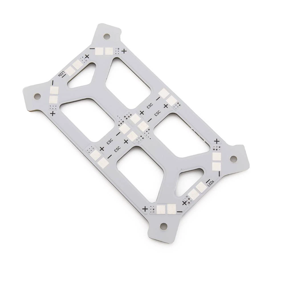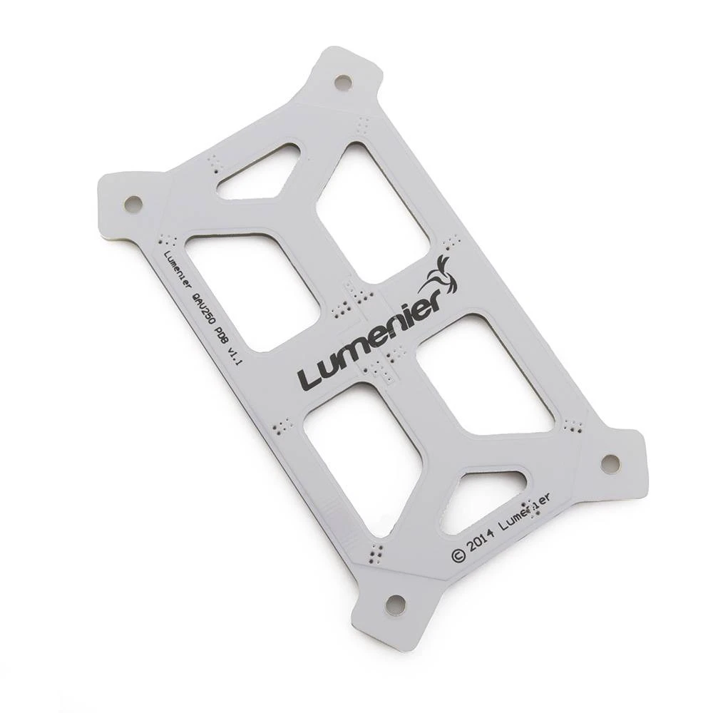 This is the power distribution board for the QAV250 Mini FPV Quadcopter. This PDB simplifies the ESC and power wire installation by giving you + and – solder pads to connect everything to, while also adding rigidity to the airframe.