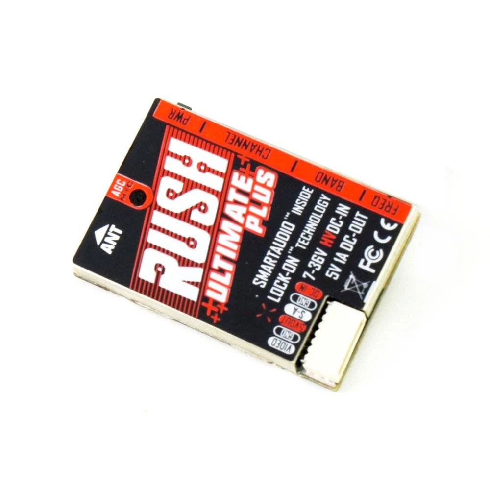 The Rush Tank Ultimate Plus is a high-quality 5.8GHz VTX with strong anti-interference ability and stable transmission. The Ultimate Plush has four adjustable levels of transmitting power. They are PIT/25/200/500/800 mW.