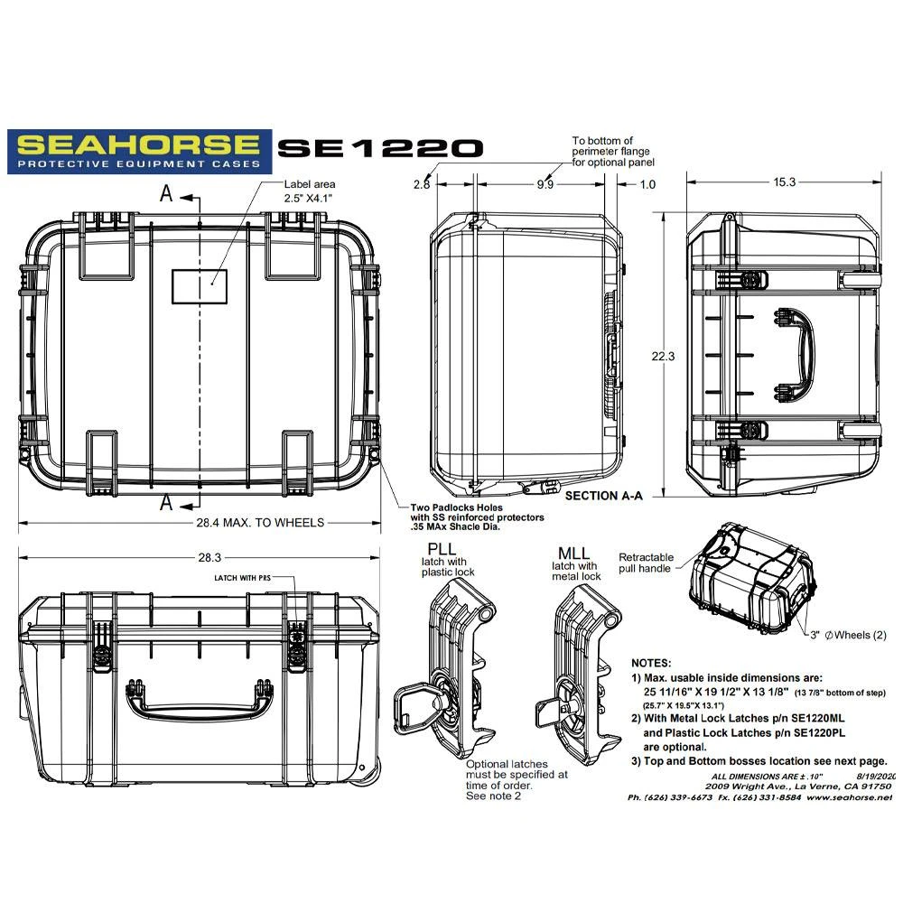 The Seahorse SE1220D Waterproof Protective Equipment Case is ideal for cameras, electronics, pistols, or other valuable equipment. Rolling case has wide track wheels and tote handle for easy transporting. This case is Injection Molded of tough Polypropylene and is watertight, airtight, and crush resistant. Incredibly tough design protects valuable equipment from moisture, dust and drops. ABS double throw latches provide quick and secure closure while the top of the case has an extra large handle for comfortable carrying. Two molded-in padlock holes accept most standard user-supplied padlocks for extra protection. CTL Locking System offers three levels of security: Click, Twist and Lock. Store, Transport and Secure your items with complete confidence.