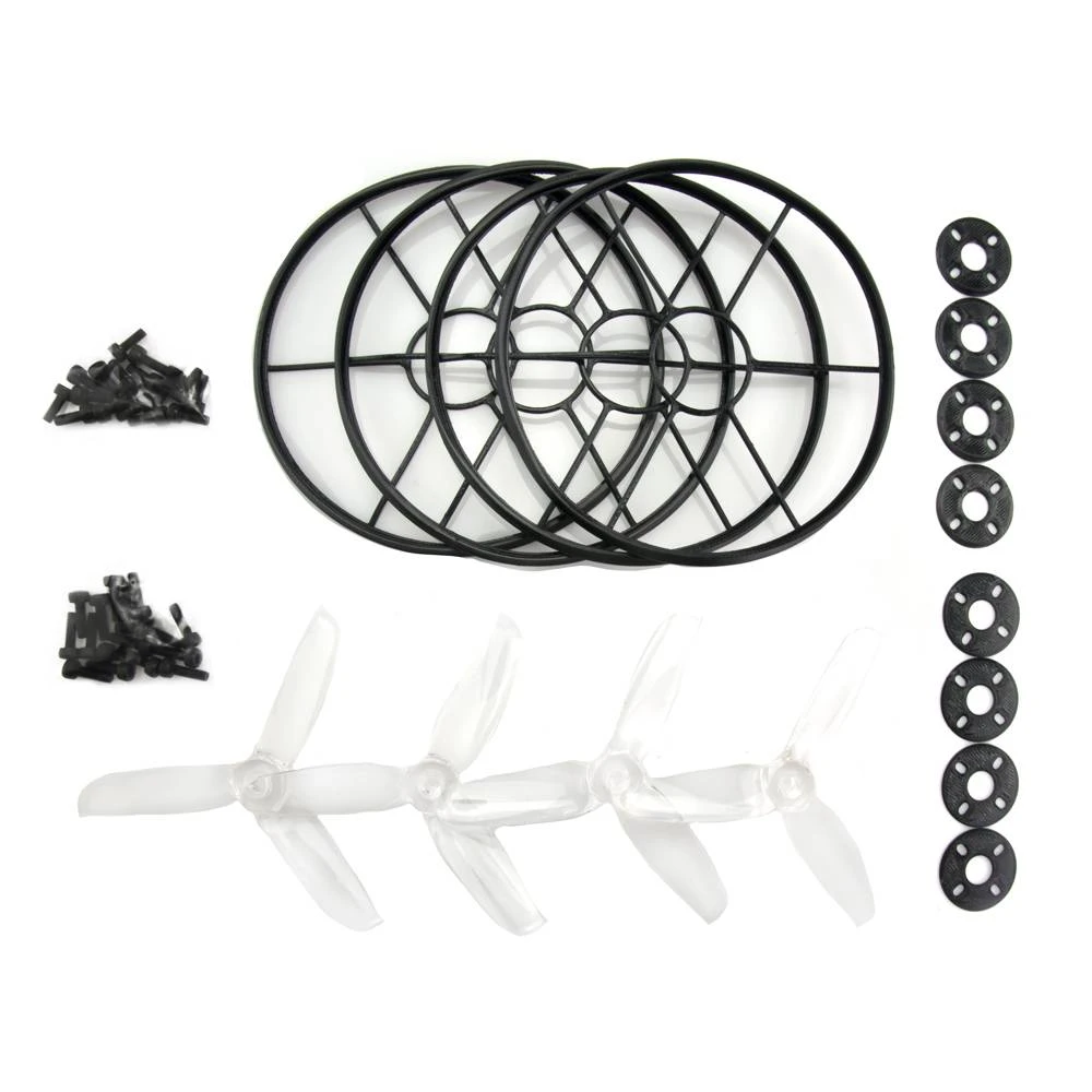 This set-up uses a 4″ propeller in place of the 5″. This allows the motors to work less with the same performance which enables our propellers to handle a higher load and give better flight times because with increased thrust and efficiency. They more than make up for the weight of themselves while providing safety and a smoother flight feel. With their highly tuned ducts, the smaller higher pitch prop performs like a smoothed-out version. They can easily be installed or taken off to give you two flight styles on the same drone. Two drones in one!